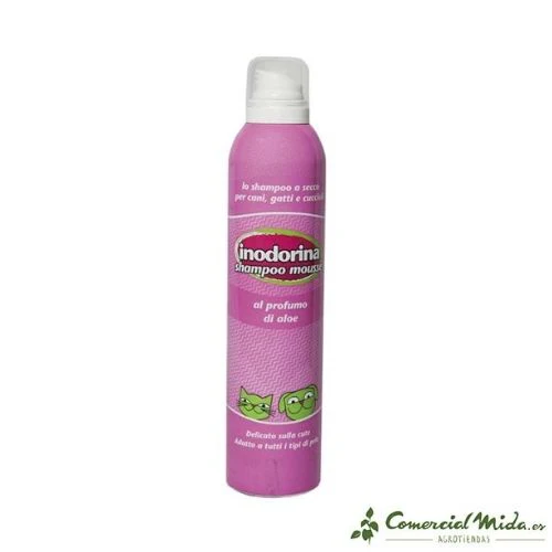 La espuma seca Inodorina es ideal para la higiene diaria de gatos, perros y sus cachorros así como para conejos, roedores, hurones y otros pequeños mamíferos. Este tipo de champú seco garantiza un cuidado completo de la piel y el pelo de las mascotas, aportando nutrición, vitalidad y fortaleza. Elimina de forma eficaz y completa los restos de suciedad y deja un agradable olor a limpio. Están disponibles dos fragancias: talco o Aloe Vera. Este tipo de espuma se puede usar sin necesidad de agua, lo que será un punto a favor con aquellos animales que tengan una relación complicada con el agua. Este champú en espuma seca respeta el pH natural de todo tipo de pieles y mejora su elasticidad. Garantiza una limpieza completa y duradera.