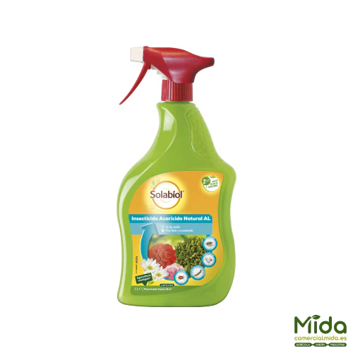 Eficaz insecticida natural contra huevos, larvas y adultos ideal para proteger las plantas en horticultura y jardinería ecológica. El contenido del envase viene preparado para su uso inmediato para eliminar los ácaros e insectos tales como pulgones, mosca blanca, orugas o araña roja, entre otros. Con efecto inmediato y totalmente natural.