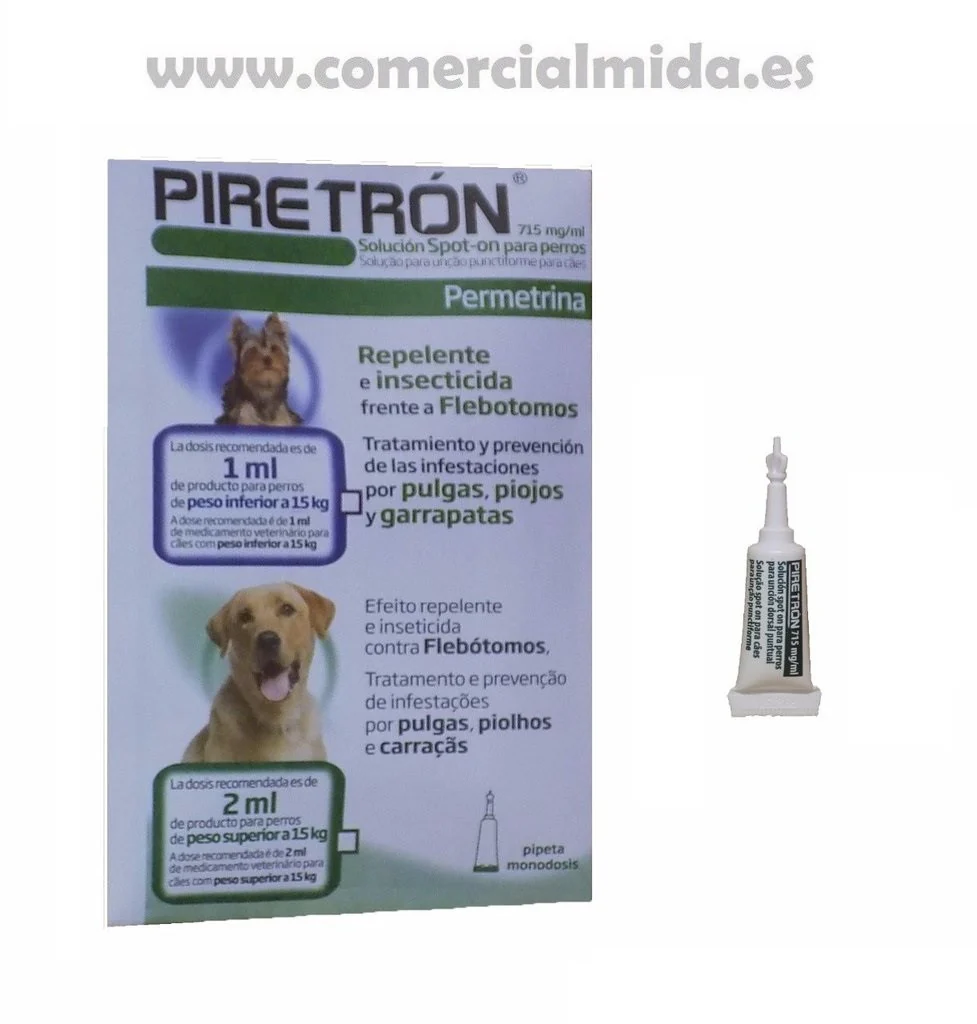 Pipetas PIRETRON para perros -15Kg anti pulgas, garrapatas y flebotomos