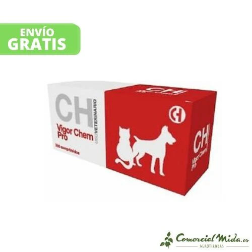Suplemento alimenticio estimulante de apetito para perros y gatos que tienen deficiencia de nutrientes en su dieta. Es un complemento nutritivo que aporta los minerales y vitaminas necesarias para el buen funcionamiento del organismo. Ideal para administrar como aporte de nutrientes en casos de deficiencia como anemias, osteomalacia y recuperación de animales convalecientes. Vigor Chem Pro es el suplemento perfecto ya que aporta las vitaminas necesarios a la vez que recupera la pérdida apetito. Incluye biotina, calcio y ácido fólico, compuestos beneficiosos para el organismo.